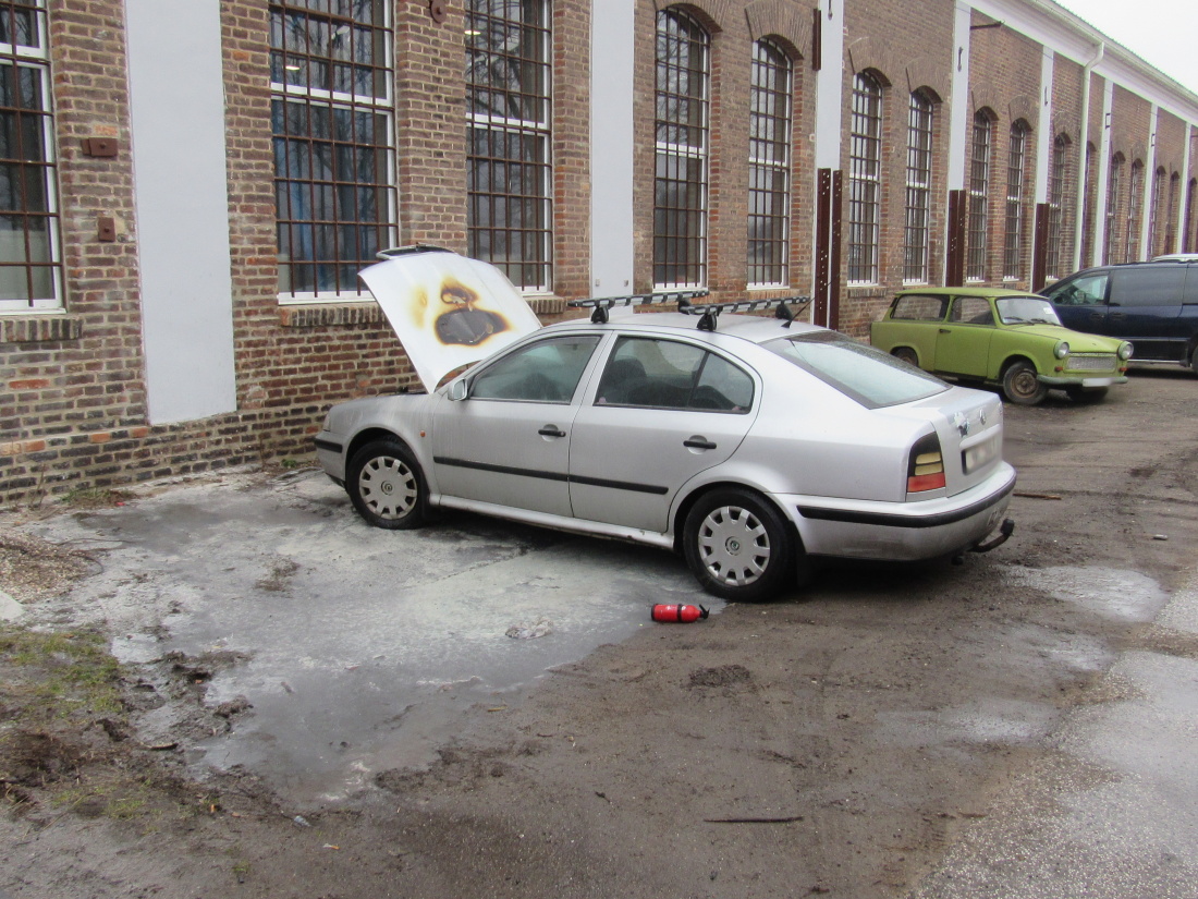 Profesionální hasiči ze stanice Jaroměř vyjížděli k požáru osobního vozidla, u kterého se podle oznamovatele nikdo další nenacházel. Automobil byl už při příjezdu jednotek celý v plamenech. Podle vyšetřovatele příčin požárů s jednalo o starý vrak. Požár způsobil škodu asi 10 tisíc korun.