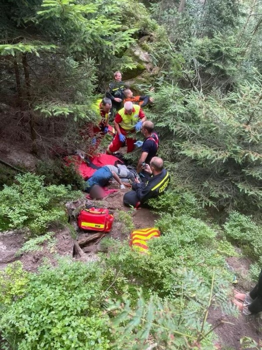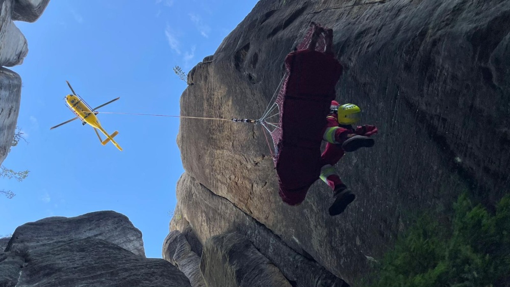 FOTO - záchrana lezce po pádu ze skály, Dolní Adršpach, 7. 8. 2021