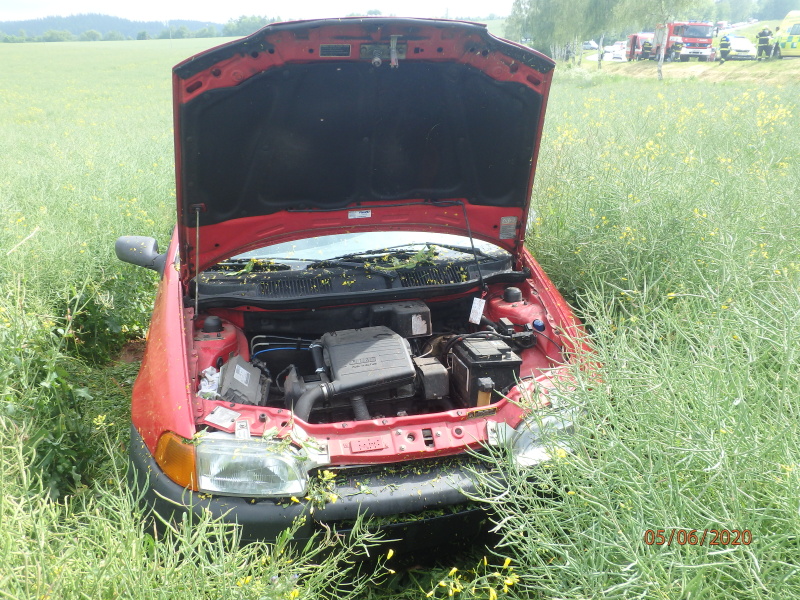 K další nehodě, která se stala na silnici č. 37, vyjížděli profesionální hasiči z královédvorské stanice a JSDH Hajnice. Došlo zde ke střetu dvou osobních automobilů, jeden skončil mimo vozovku v poli. O jednu osobu se postarali zdravotničtí záchranáři. Hasiči zajistili místo události, zkontrolovali, zda nedochází k úniku provozních kapalin a předali místo zásahu policistům.