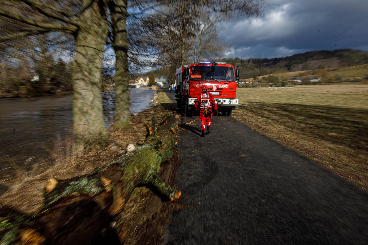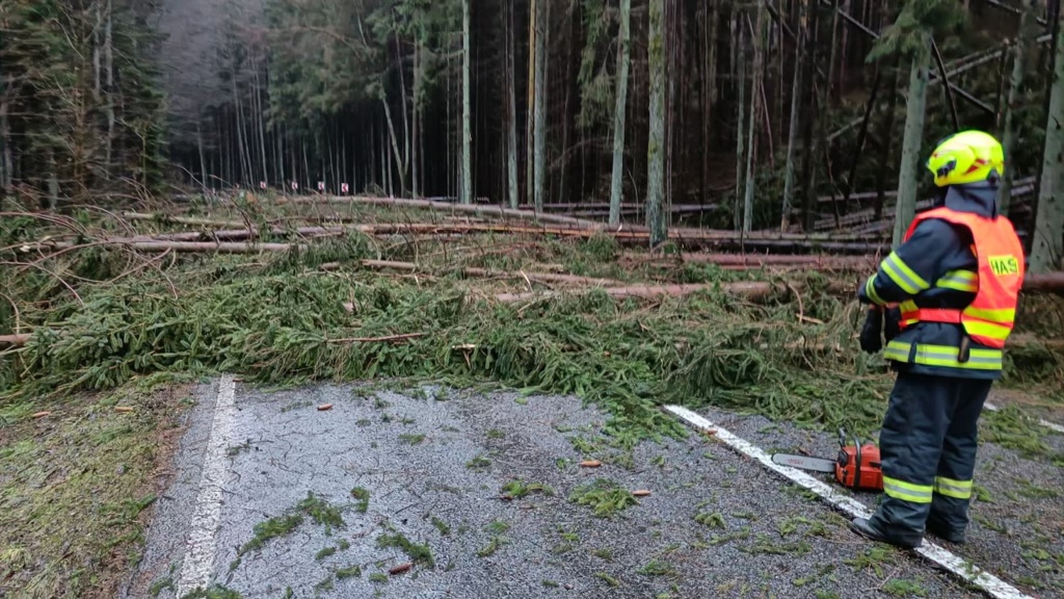 V Rudníku na Trutnovsku došlo k sesunu svahu v blízkosti rodinného domu. Nikdo nebyl zraněn, evakuovali jsme obyvatele domu. Statik na místě vyhodnotil, že je potřeba svah stabilizovat, toto opatření zajistí místní firma. Silnici č. 14 mezi Náchodem a Horní Radechovou dopoledne zasypaly desítky spadlých stromů, odstraňovali je profesionální hasiči z Náchoda a JSDH Horní Radechová a Dolní Radechová. Vítr působil i dopravní nehody, dvě jsme zaznamenali u dálnice D11, kdy měl vítr převrátit přívěsy za nákladními vozidly. Naštěstí není hlášeno v souvislosti s počasím a vzniklými událostmi žádné zranění.