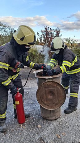 Na rozdíl od běžných požárů tentokrát voda nebyla řešením – naopak by reakci podpořila. Hasiči proto použili práškový hasicí přístroj a následně oblast kontrolovali termokamerou, aby vyloučili skrytá ohniska. Po stabilizaci situace byl zasažený materiál vložen do suchého pytle a uzavřen do kovové nádoby s oxidem uhličitým, který vytvořil inertní prostředí.