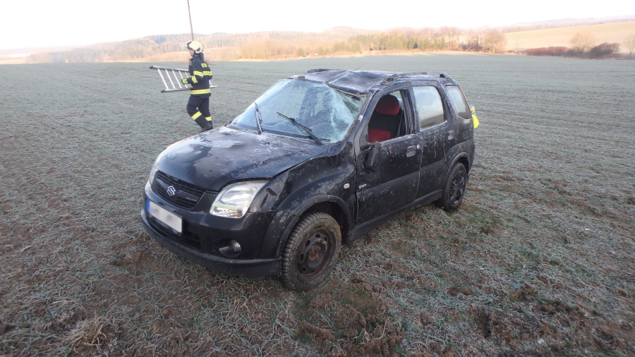 Na silnici č. 318 mezi Rychnovem nad Kněžnou a obcí Jaroslav došlo k dopravní nehodě osobního vozidla. Auto se při nehodě převrátilo na bok, posádka zůstala uvnitř vozu. V autě cestovali dva lidé a pes. Hasiči je pomohli vyprostit ven z havarovaného automobilu, osoby si převzala do péče ZZS. Následně otočila jednotka vůz zpět na kola a zkontrolovala, zda nedochází k úniku provozních kapalin. Na místě zasahovala jednotka profesionálních hasičů z Rychnova nad Kněžnou.