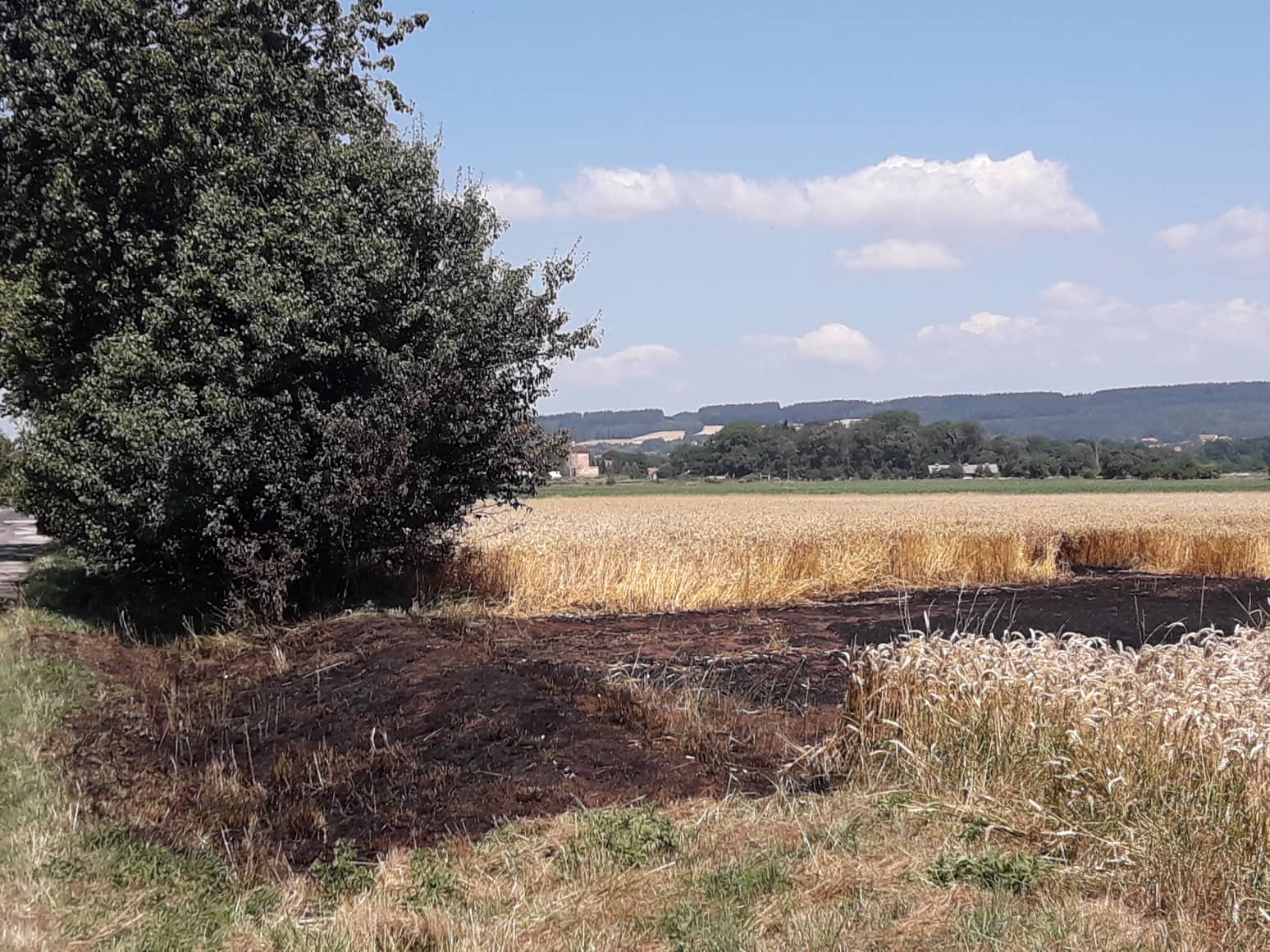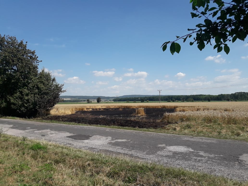 V katastru části Obora došlo k požáru pole s vzrostlým obilím. Hořelo na ploše asi 30x40m, na likvidaci bylo nasazeno 5 jednotek hasičů. Hasiči dostali požár rychle pod kontrolu, uhasit hořící část pole se jednotkám podařilo těsně po půl dvanácté. Vzhledem k tomu, že se jednalo o neposečené pole, vznikla zde škoda asi 10 tisíc korun. Pole s obilím, které hasiči před plameny zachránili, představuje hodnoty ve výši téměř 2 miliony korun.