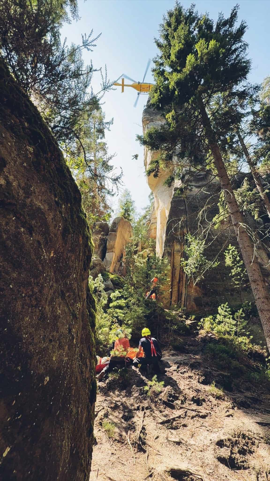 Záchrana ve skalách: Horolezec v Adršpachu spadl ze stěny, zasahoval vrtulník