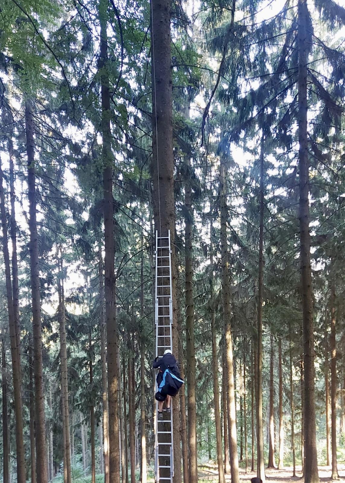 Už v pátek 12. 8. 2022 přistál paraglidista v koruně stromu v katastru Nové Paky v městském lese na Poštmistrově kopci. Muž nebyl naštěstí vůbec zraněn, ovšem z 35 metrů vysokého hnízda mu dolů museli pomoci také hasiči. Do lesa přijely dvě profesionální jednotky požární ochrany z Nové Paky a Jičína i s výškovou technikou. K zachycenému paraglidistovi se hasiči přiblížili v koši automobilového žebříku, do koruny stromu se přímo až k muži vyšplhal hasič - lezec. Zajištěný sportovec se dostal do koše výškové techniky a byl svezen bezpečně dolů. Po dohodě se správcem lesa pokáceli hasiči nakonec i strom, v jehož větvích zůstal zamotaný padák v hodnotě několika desítek tisíc korun. Podle informací správce byl strom určen ke kácení, (ne)přesný přistávací manévrZáchrana osoby Nová Paka 12. 8. 2022 paraglidisty proces jen urychlil.