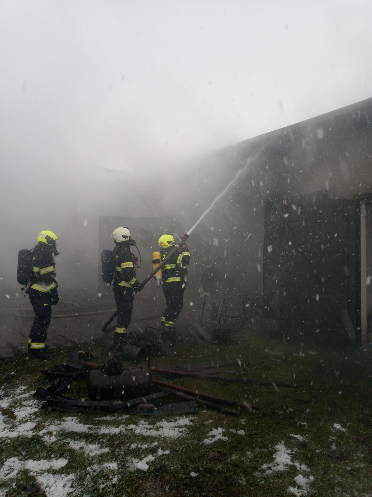 Kromě nehod a technických pomocí mají za sebou hasiči na Trutnovsku také jeden náročný zásah u požáru dvougaráže v obci Královec. Museli se nejprve dostat na místo při ztížených jízdních podmínkách za intenzivního sněžení, samotný zásah pak komplikoval silný vítr. Požár zasáhl jednu z garáží v plném rozsahu, hasičům se podařilo zabránit šíření požáru na druhou garáž a ostatní části hospodářského objektu, jehož byla dvougaráž součástí. Zároveň zachránili vytažením z druhé garáže zaparkovaný osobní automobil. Likvidaci události ohlásil velitel zásahu v 15:43 hod.