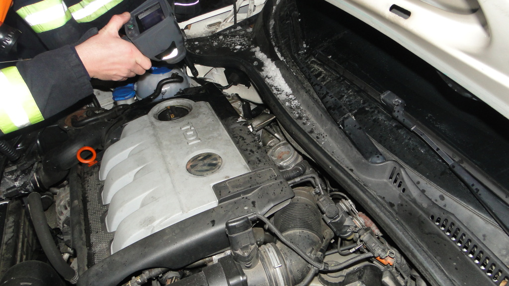 Jednotka profesionálních hasičů z Hradce Králové – stanice Pražská byla ve 20:25 hodin přivolána k hořícímu vozidlu na dálnici D11 ve směru na Prahu. Na 74. kilometru dálnice došlo k požáru v motorovém prostoru u osobního vozidla Volkswagen Golf. Hasiči dohasili požár a odpojili autobaterii. Pomocí termokamery zkontrolovali teplotu v motorovém prostoru a místo události předali vyšetřovateli HZS Pardubického kraje k dalšímu šetření. (foto: stanice HK – Pražská)