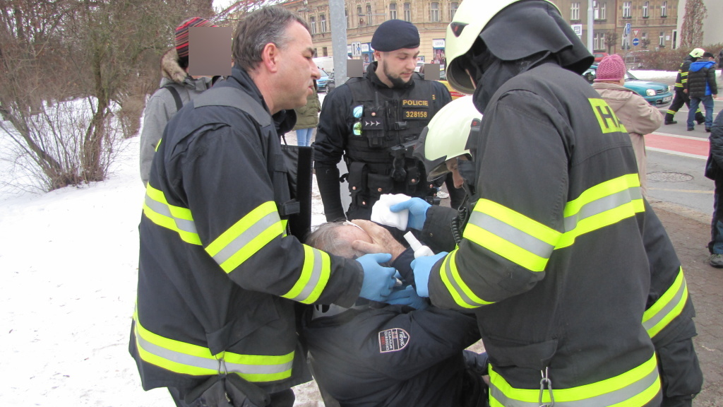Ke střetu osobního vozidla a chodce došlo včera odpoledne v ulici Československé armády v Hradci Králové. Na místo události vyjeli ve 14:51 hodin profesionální hasiči z centrální stanice Hradec Králové s rychlým zásahovým vozidlem a cisternou. Osmaosmdesátiletý chodec utrpěl zranění na hlavě a hasiči mu do příjezdu záchranářů poskytli předlékařskou pomoc. Následně byl předán do péče záchranné služby a převezen do nemocnice. Řidič osobního vozidla vyvázl bez zranění. Hasiči po dobu policejního vyšetřování usměrňovali a řídili v místě události dopravu. Příčiny nehody šetří Policie ČR. (foto: centrální stanice Hradec Králové)