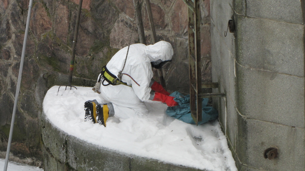 Profesionální hasiči z Jičína a Nové Paky odstraňovali rampouchy z budov Obvodního oddělení Policie ČR a Městského úřadu v Nové Pace.
