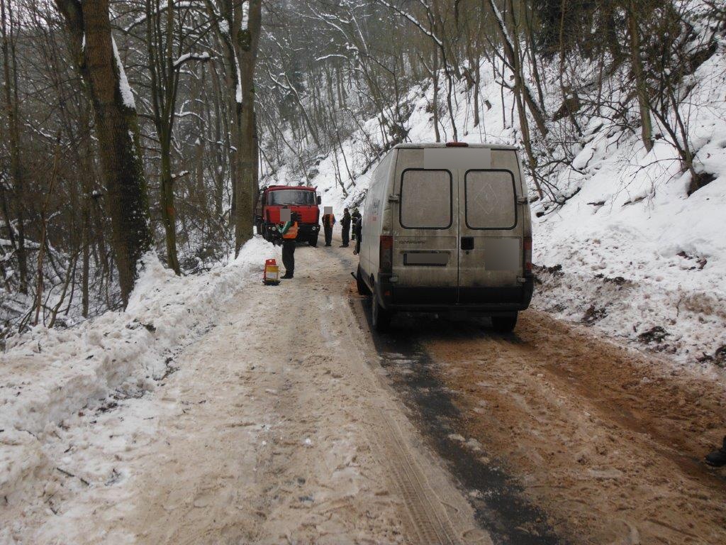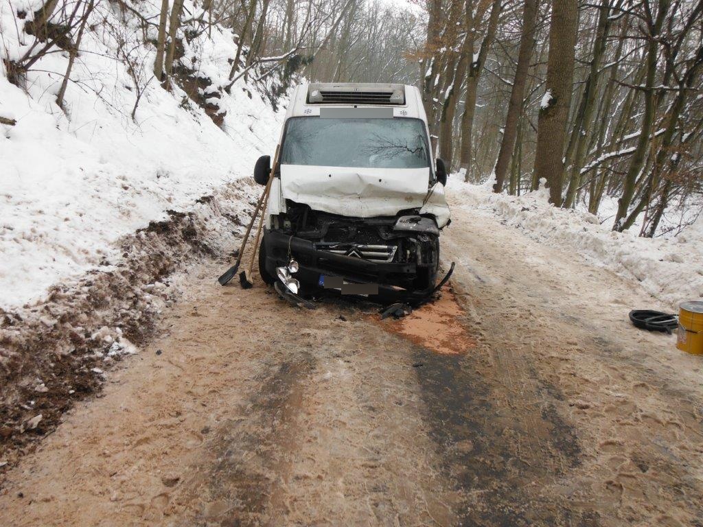 K dopravní nehodě dvou vozidel vyjeli včera před polednem profesionální hasiči z Hořic. Na silnici druhé třídy u Jeníkova mezi Hořicemi a Miletínem došlo ke střetu nákladního vozidla zn. Tatra 815 s dodávkou. Oba řidiči vyvázli bez zranění a v době příjezdu hasičů byli venku z vozidel. Z dodávky zn. Citroën Jumper došlo k úniku provozních kapalin, které hasiči zasypali sorbentem. Po zadokumentování události hasiči odstavili dodávku na nedalekou lesní cestu. Nákladní automobil byl schopen jízdy a odjel po vlastní ose. (foto: stanice Hořice)