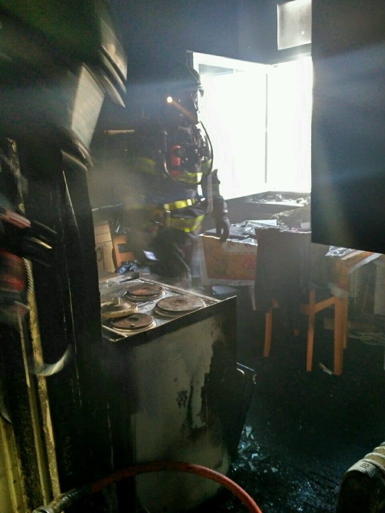 Při příjezdu na místo a provedeném průzkumu hasiči zjistili, že došlo k požáru v jedné z místností bytu, kde v tu dobu nikdo nebyl. Z bytu vynesli čtyři tlakové lahve, které ochladili před domem. Požár dostali pod kontrolu v 15:46 hodin a uhasili deset minut po 16. hodině. Požár s největší pravděpodobností vznikl od zapnutého elektrického topidla. Hmotná škoda byla předběžně vyčíslena na 200 tisíc korun. Vzhledem k minimálnímu tepelnému působení plameny poškodily koberec, na kterém stálo topidlo, a kombinované kuchyňské spotřebiče. Další škodu na majetku způsobily zplodiny hoření. Při požáru nebyl nikdo zraněn. (foto: stanice HK – Pražská)
