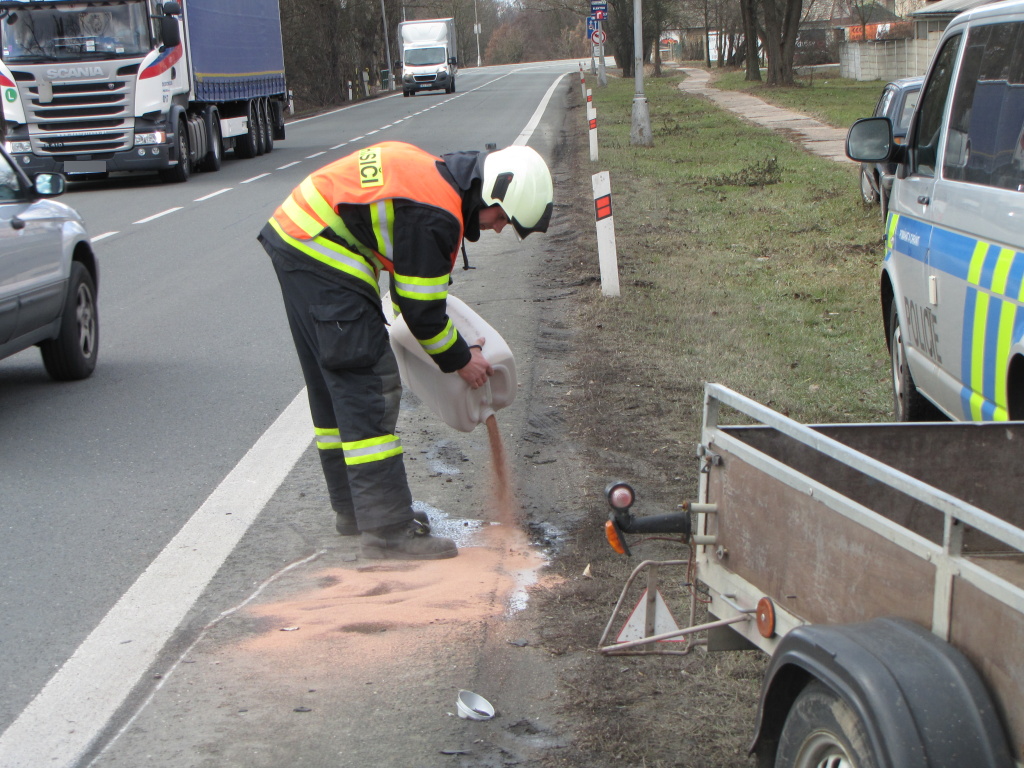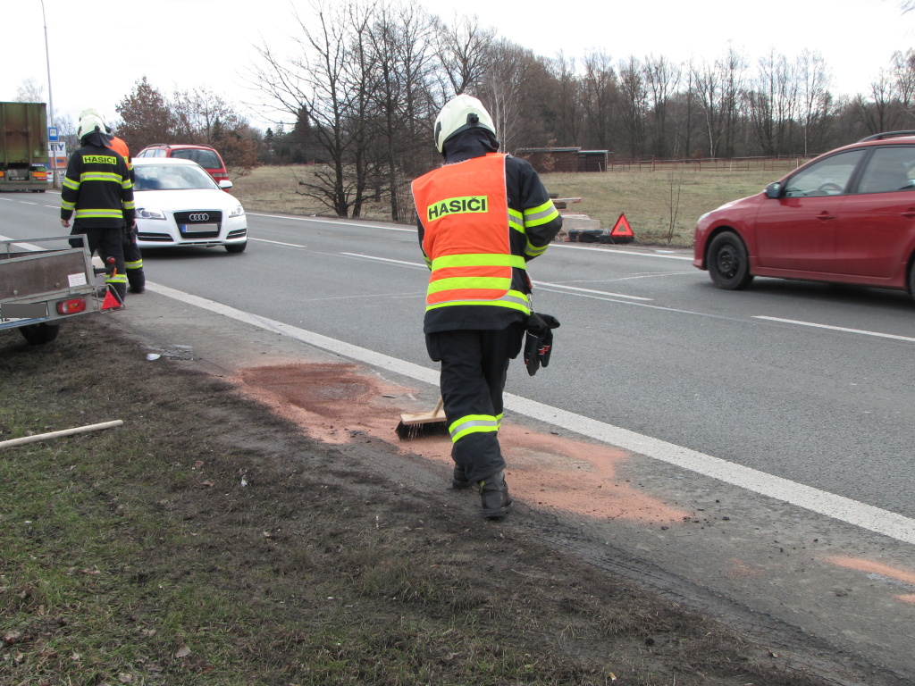 Bez zranění se obešla nehoda dvou osobních vozidel v ulici Bratří Štefanů v Hradci Králové. Na místo události vyjeli v 11:13 hodin profesionální hasiči z centrální stanice Hradec Králové s cisternou. Při jejich příjezdu bylo již jedno z vozidel odvezeno odtahovou službou. Druhý automobil zn. Volkswagen Golf s přívěsným vozíkem stál mimo hlavní vozovku. Hasiči zasypali sorbentem uniklé provozní kapaliny a odstranili je z krajnice. Poté pomohli řidiči s přeložením nákladu z přívěsného vozíku do jiného vozidla. Příčiny nehody šetří Policie ČR. (foto: centrální stanice Hradec Králové)