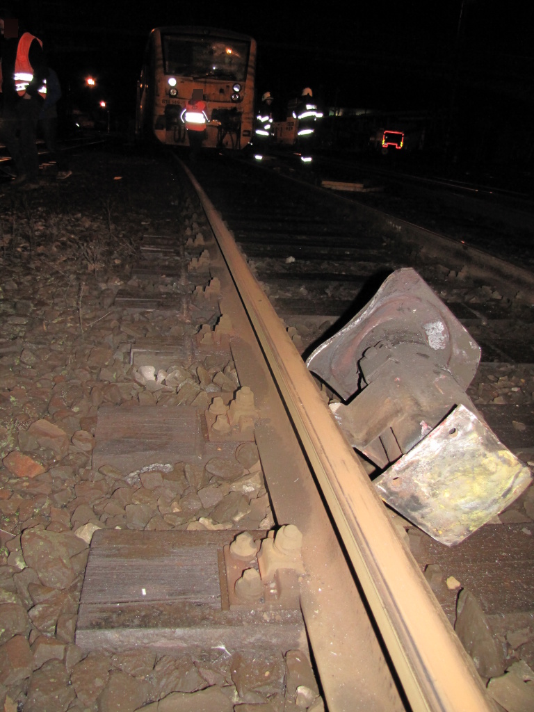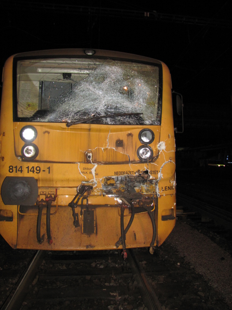 Ke střetu dvou vlaků došlo včera večer na kolejích u hlavního nádraží v Hradci Králové. Na místo události vyjeli ve 21:23 hodin profesionální hasiči z centrální stanice Hradec Králové a hasiči HZS podniku Správy železniční dopravní cesty Nymburk. Při příjezdu královéhradeckých hasičů na místo určení bylo zjištěno, že došlo ke srážce osobního a nákladního vlaku. Osobní vlak, ve kterém byl pouze strojvedoucí, po nárazu skončil několik desítek metrů od druhé vlakové soupravy a částečně mimo koleje. Při nehodě nebyl zraněn ani jeden strojvedoucí vlaků. Hasiči zkontrolovali osobní vlak, zda se v něm nenachází žádný cestující a po příjezdu drážních hasičů jim předali místo události. (foto: centrální stanice Hradec Králové)