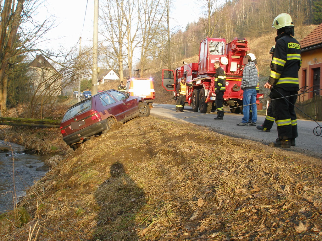 K dopravní nehodě osobního vozidla došlo včera ráno v Horním Adršpachu. Na místo události vyjeli v 06:02 hodin profesionální hasiči z Broumova, Náchoda a dobrovolní hasiči z Adršpachu. Osobní vůz zn. Škoda Felície skončil na levém boku mimo komunikaci v místním potoce. Řidič vyvázl bez zranění. Hasiči pomocí lan navijáků cisterny a vyprošťovacího vozidla vytáhli škodovku zpět na vozovku. Při vyprošťování umístili na vodní hladinu sorbční hady pro případný únik provozních kapalin. Poté pomohli s naložením vozidla na odtah. (foto: stanice Broumov)