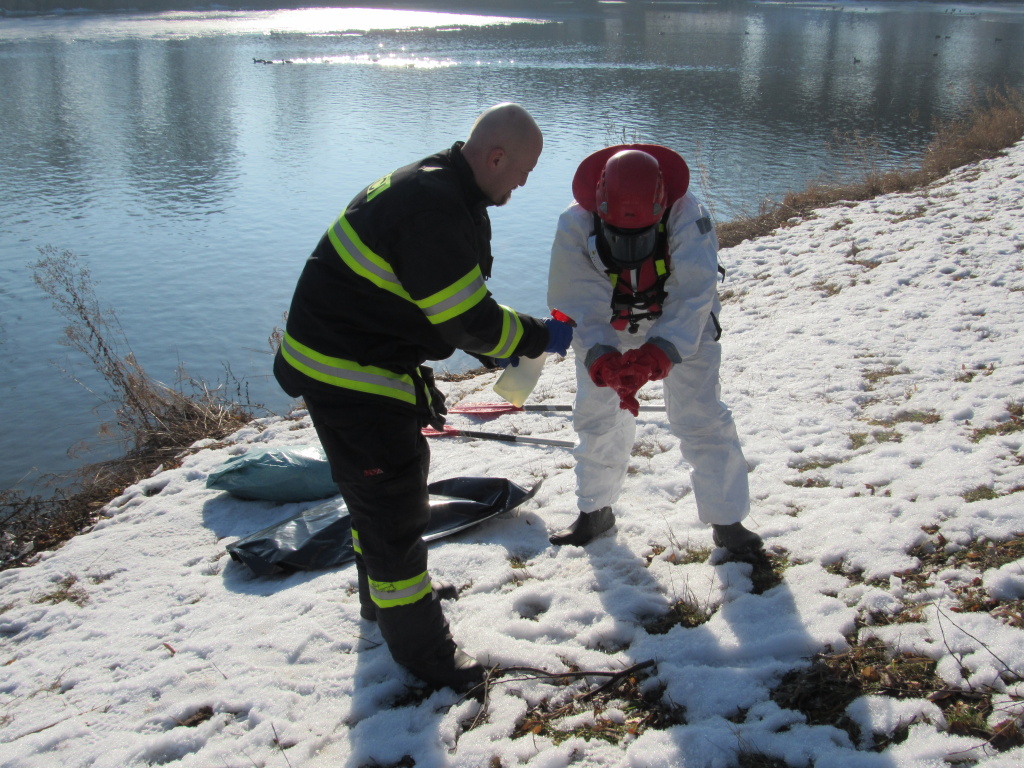 Jednotka profesionálních hasičů z centrální stanice Hradec Králové byla v devět hodin ráno přivolána k nálezu uhynulé labutě na soutoku Labe a Orlice v Hradci Králové. Dva hasiči na člunu se dostali k ledové kře uprostřed řeky a jeden z nich oblečený v jednorázovém obleku odebral uhynulého ptáka do igelitových pytlů. Ty následně předal pracovníkům technických služeb. Po dezinfekci použitých technických prostředků a vybavení se jednotka vrátila zpět na základnu. (foto: centrální stanice Hradec Králové)