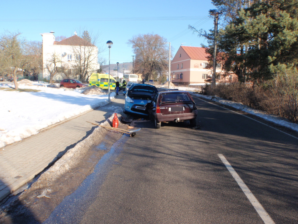 K dopravní nehodě dvou osobních vozidel a autobusu došlo včera dopoledne v Horní Nové Vsi. Na místo události vyjeli v 09:16 hodin profesionální hasiči z Nové Paky. Po příjezdu jednotky na místo byli již všichni cestující odvezeni náhradní autobusovou dopravou. Nikdo z nich neutrpěl zranění. Záchranná služba měla v péči dvě zraněné osoby z havarovaných vozidel značek Citroën AX a C3. Hasiči u obou aut odpojili autobaterie a zasypali sorbentem uniklé provozní kapaliny. Po zadokumentování události Policií ČR hasiči pomohli s naložením jednoho z vozidel na odtah. Příčiny nehody a míru zavinění šetří Policie ČR. (foto: stanice Nová Paka)