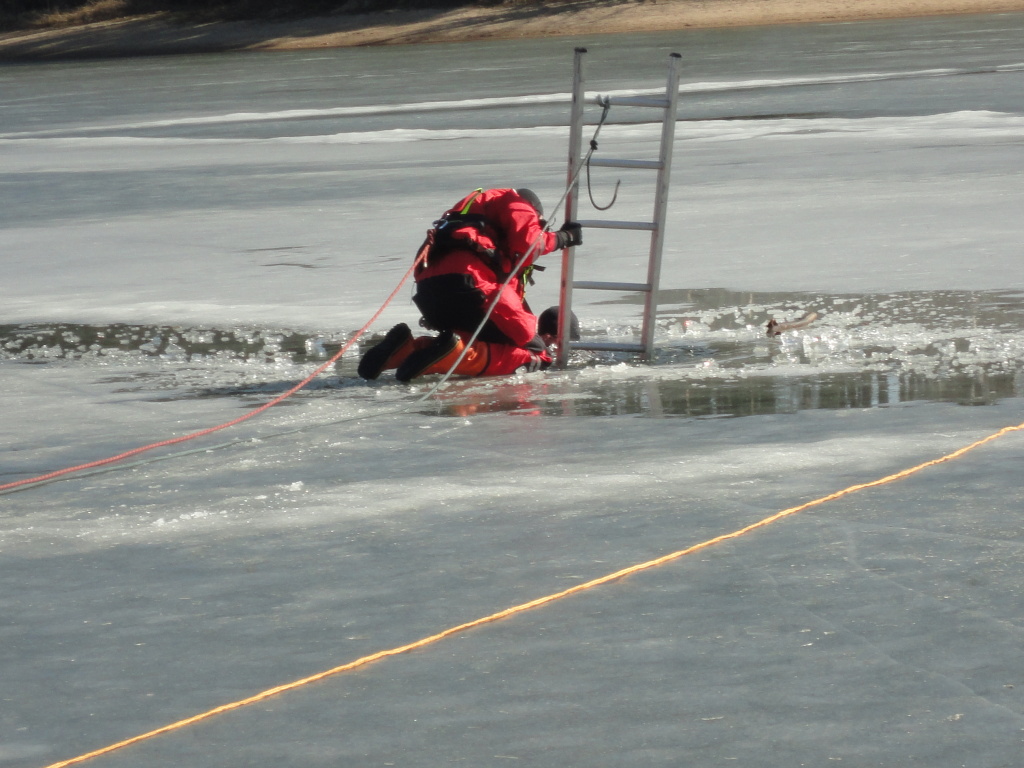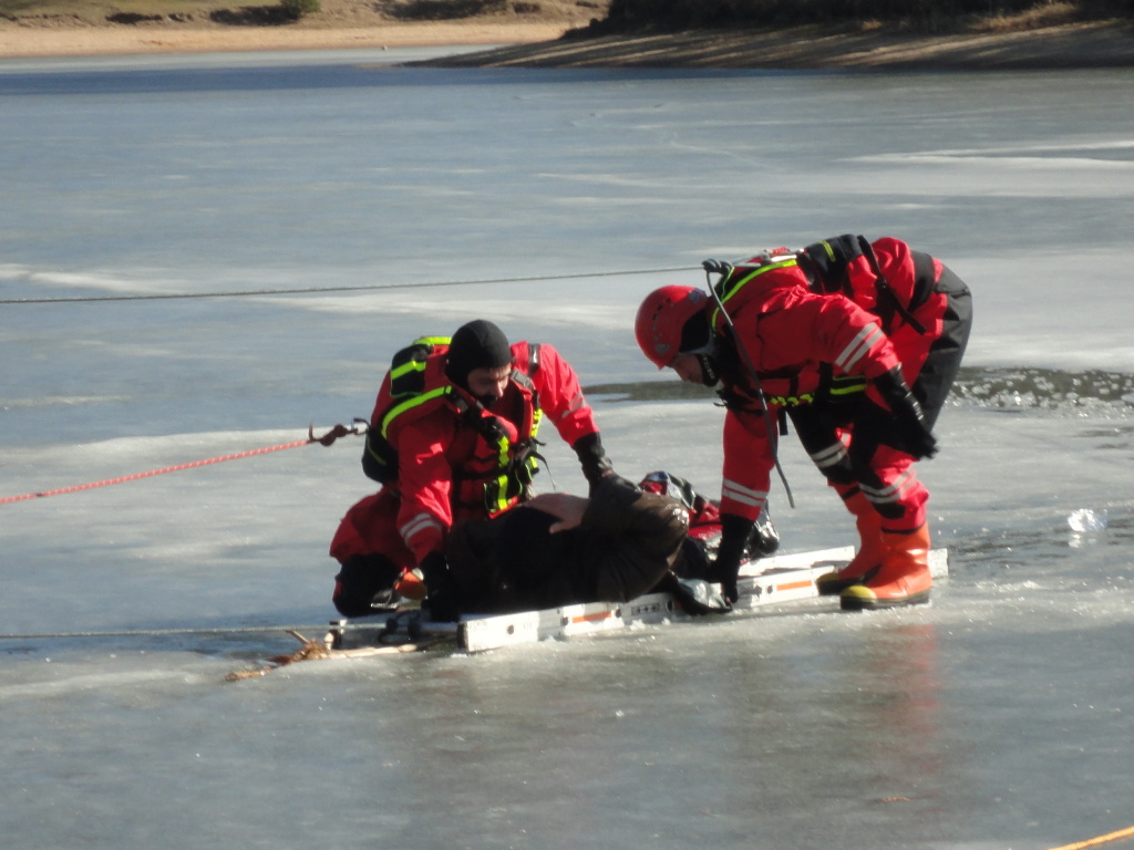 Obě jednotky královéhradeckých profesionálních hasičů absolvovaly během včerejšího dne prověřovací cvičení na záchranu osoby z vody. Během dopoledne byli hasiči ze stanice Pražská přivoláni k Plačickému písníku, kde se měla osoba probořit pod led. Odpoledne hasiči z centrální stanice zachraňovali osobu z vody na Stříbrném rybníku v Hradci Králové. (foto: centrální stanice Hradec Králové)