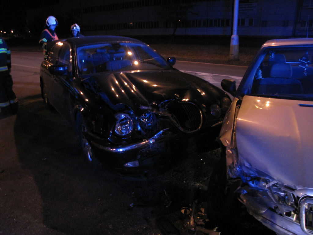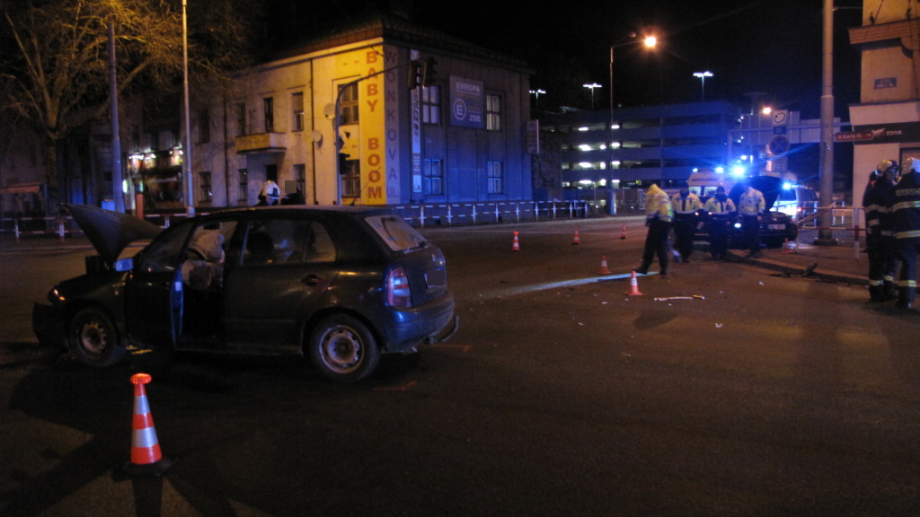Jednotka profesionálních hasičů z centrální stanice Hradec Králové vyjela v noci z pátku na sobotu 25. února 2017 krátce po půlnoci ke střetu dvou osobních vozidel na křižovatce ulic Střelecká a třída Karla IV. v Hradci Králové. Při nehodě byla jedna osoba zraněna a převezena záchrannou službou do nemocnice. Jedno z vozidel skončilo mimo komunikaci a narazilo do zábradlí, které poškodilo. Hasiči zajistili oba vozy proti požáru a odpojili autobaterie. Příčiny nehody a míru zavinění šetří Policie ČR. (foto: centrální stanice Hradec Králové)