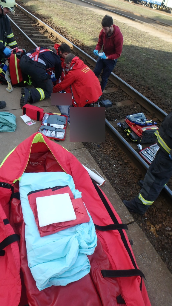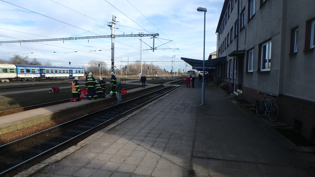 Tři jednotky hasičů zasahovaly v neděli odpoledne při vážné nehodě na vlakovém nádraží v Chlumci nad Cidlinou. Na jedné z kolejí došlo ke střetu osobního vlaku s chodcem. Na místo události vyjeli v 15:35 hodin profesionální hasiči z Nového Bydžova, místní dobrovolní hasiči a hasiči HZS podniku Správy železniční dopravní cesty Nymburk. Při příjezdu první jednotky na místo určení již na místě zasahovala posádka letecké záchranné služby, která měla v péči těžce zraněného muže. Hasiči asistovali záchranářům při ošetřování a stabilizaci pacienta. Současně poskytli nezbytnou psychologickou pomoc malému dítěti, které s pětačtyřicetiletým mužem cestovalo. Po zajištění základních životních funkcí byl pacient naložen do vrtulníku a transportován do nemocnice v Hradci Králové. Příčiny nehody šetří Policie ČR a Drážní inspekce. (foto: stanice Nový Bydžov)