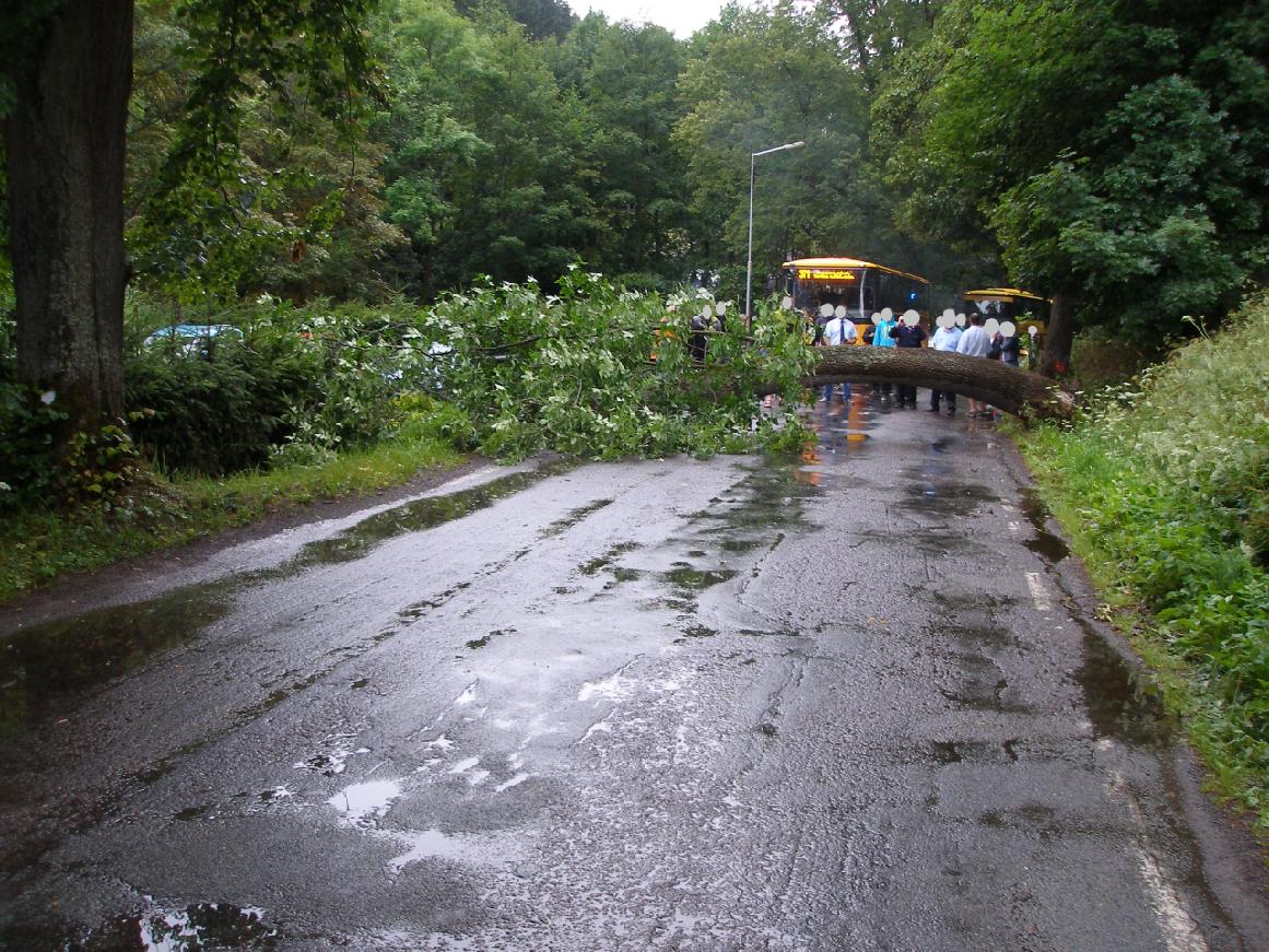 Profesionální hasiči z Broumova a místní dobrovolní hasiči odstranili v časných ranních hodinách (ohlášeno 6:08) strom spadlý na vozovku v Teplicích nad Metují.