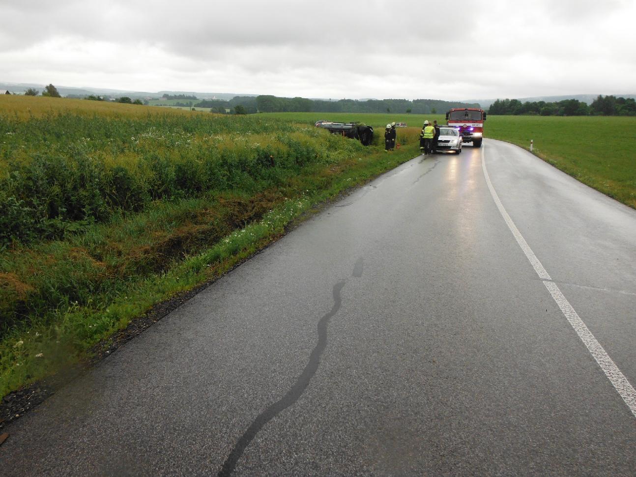 Profesionální hasiči z Hořic zasahovali po 17. h (ohlášeno 16.52) u nehody osobního automobilu. Řidič vyjel mimo vozovku a převrátil vozidlo přes střechu na bok do příkopu. K havárii došlo u Svatojánského Újezdu. Jednotka provedla na vozidle protipožární opatření odpojením autobaterii. Poté vůz otočila zpět na kola a pomohla s jeho naložením na odtah. Řidič byl odvezen zdravotnickou záchrannou službou na vyšetření do nemocnice.