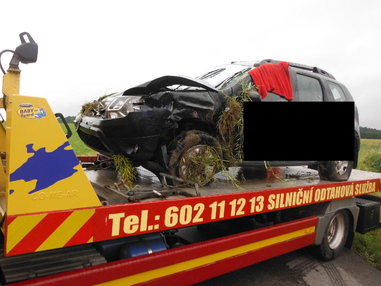 Královédvorští profesionální hasiči vyjeli v 18:56 k dopravní nehodě osobního vozidla poblíž Horního Dehtova. Také v tomto případě se jednalo o zásah, při němž řidička vjela svým vozidlem do příkopu, a vůz skončil převrácený na boku. Starší žena vyvázla bez zranění. Auto bylo vytaženo odtahovou službou.