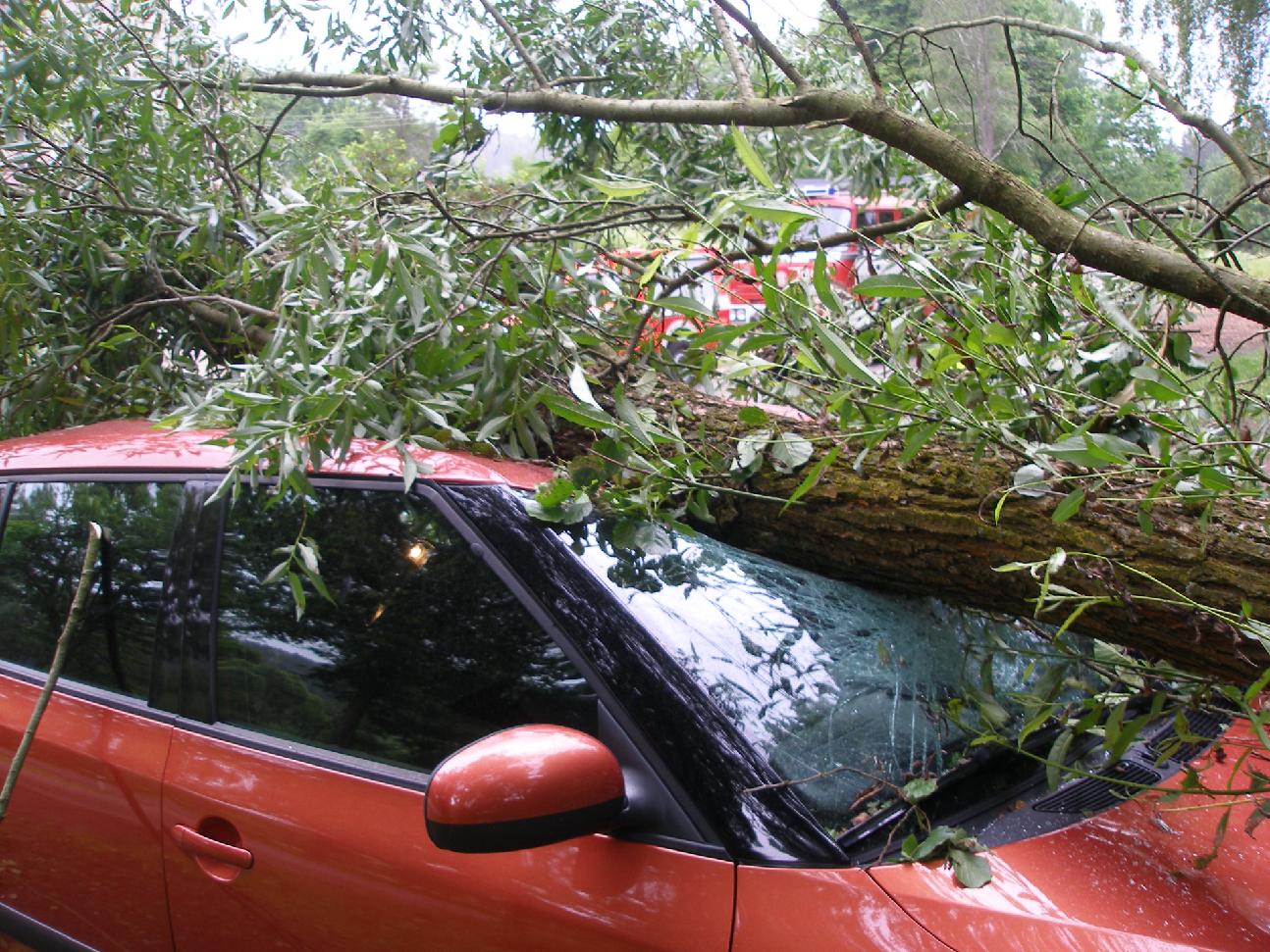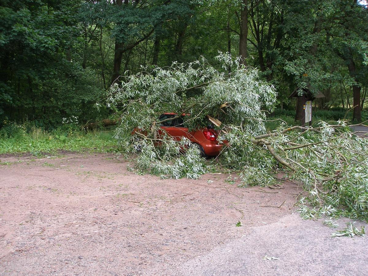 U Hynčic spadl strom na zaparkované vozidlo Škoda Fabia. K jeho odstranění vyjeli v 15:03 profesionální hasiči z Broumova.