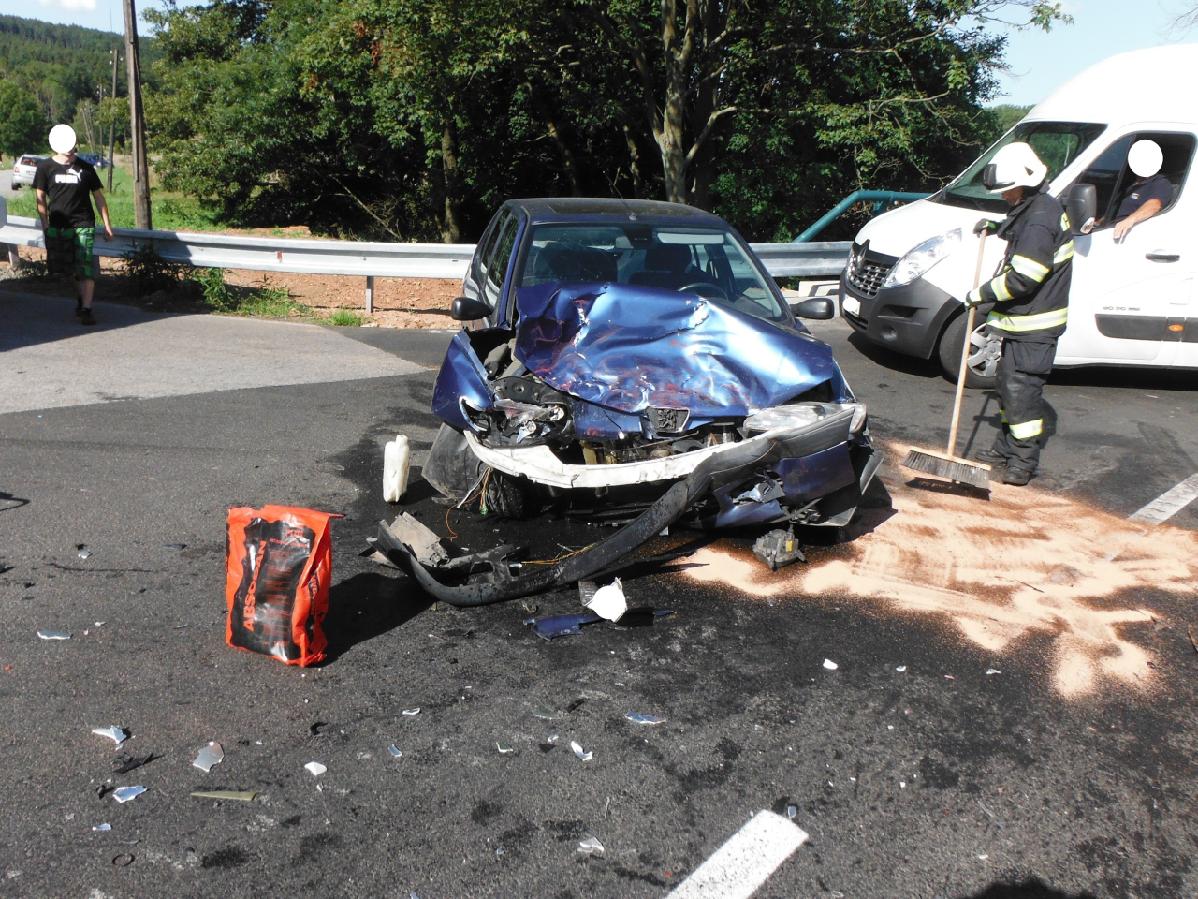 Profesionální hasiči z Hořic zasahovali dopoledne (ohlášeno 9:25) při dopravní nehodě dodávky a osobního automobilu. Jednotka provedla na vozidlech protipožární opatření a odpojila autobaterie. Uniklé provozní kapaliny zasypala sorbentem. Komunikace byla v místě neprůjezdná a tvořily se kolony. Před polednem byla vozovka zprůjezdněna v jednom jízdním pruhu. Jedna osoba utrpěla zranění a byla odvezena sanitou na ošetření do nemocnice. Po naložení vozidel na odtah uklidili hasiči silnici a komunikace byla po poledni zcela zprůjezdněna.