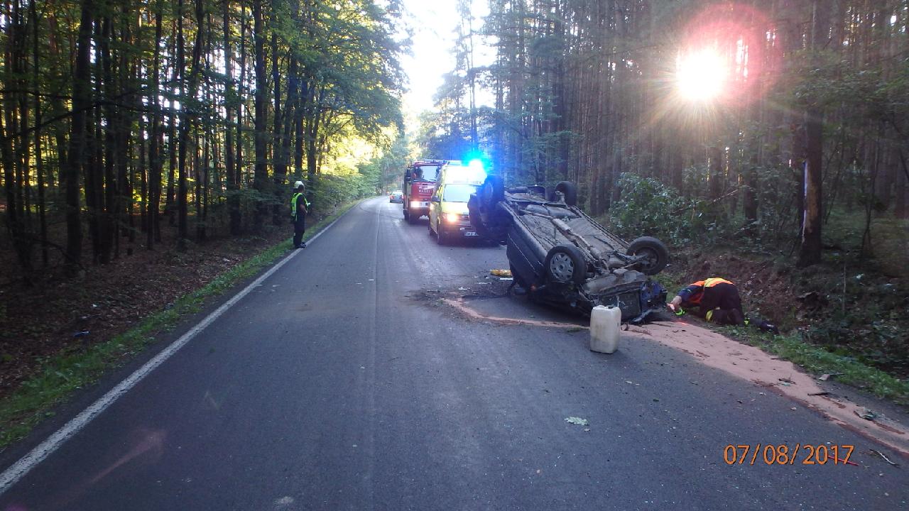 Profesionální hasiči ze Dvora Králové nad Labem zasahovali ráno (ohlášeno 6:33) u dopravní nehody osobního vozidla. K té došlo za obcí Zdobín ve směru na Horní Dehtov. Řidič vyjel mimo vozovku a Škodu Felicii převrátil na střechu. Došlo ke zranění jedné osoby, která byla odvezena do nemocnice. Hasiči uklidili vozovku a uniklé provozní kapaliny zasypali sorbentem.