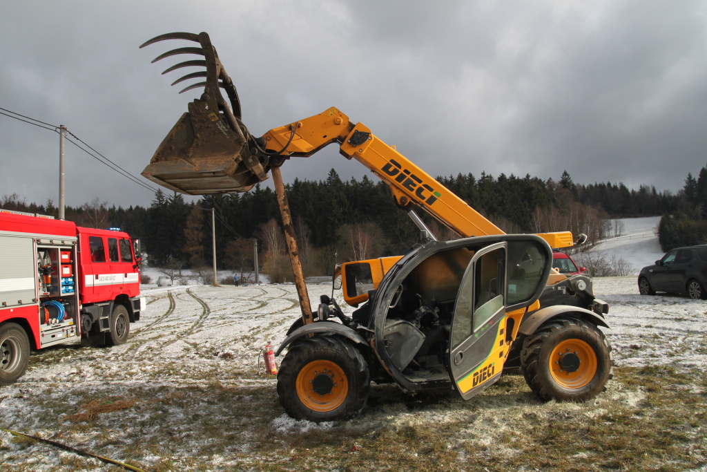 Oheň poničil teleskopický manipulátor značky Dieci, škoda byla předběžně vyčíslena na 700 tisíc korun. Další hodnoty ve výši jednoho milionu korun se podařilo díky zásahu hasičů uchránit. Příčinou požáru byla podle vyšetřovatele hasičů nedbalost při manipulaci s otevřeným ohněm. Manipulátor totiž pracoval v blízkosti ohniště, ze kterého odlétaly jiskry a žhavé oharky, jež se následně dostaly až do zemědělského stroje.