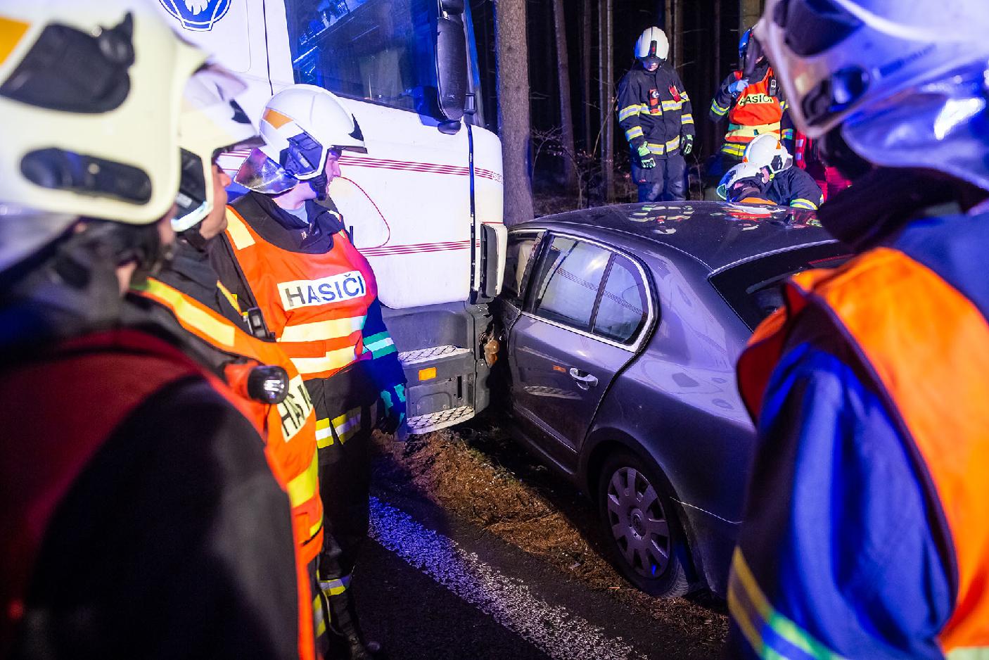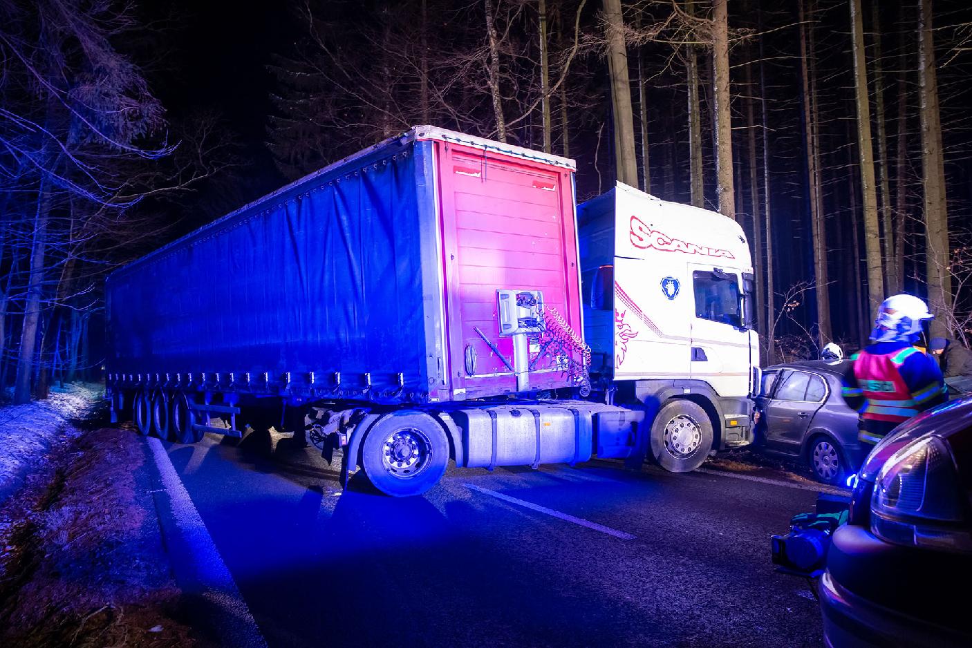 Náchodští profesionální hasiči a dobrovolní hasiči z Nového Města nad Metují vyjeli odpoledne ke středu nákladního a osobního automobilu, ke kterému došlo na silnici I/14 mezi Náchodem a Novým Městem nad Metují. Hasiči poskytli zraněné osobě předlékařkou péči a poté ji předali zdravotnické záchranné službě. Došlo k úniku provozních kapalin. Jednotky pomocí sorbentu skvrnu zlikvidovali a provedli úklid vozovky. Vůz byl naložen na odtah. Komunikace byla v místě nehody uzavřena na 1,5 hodiny.