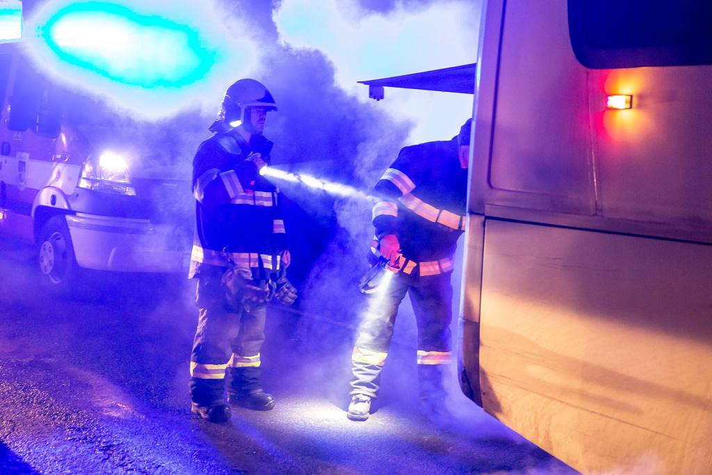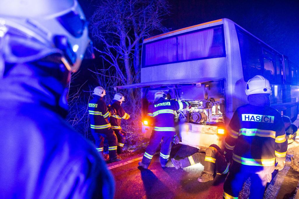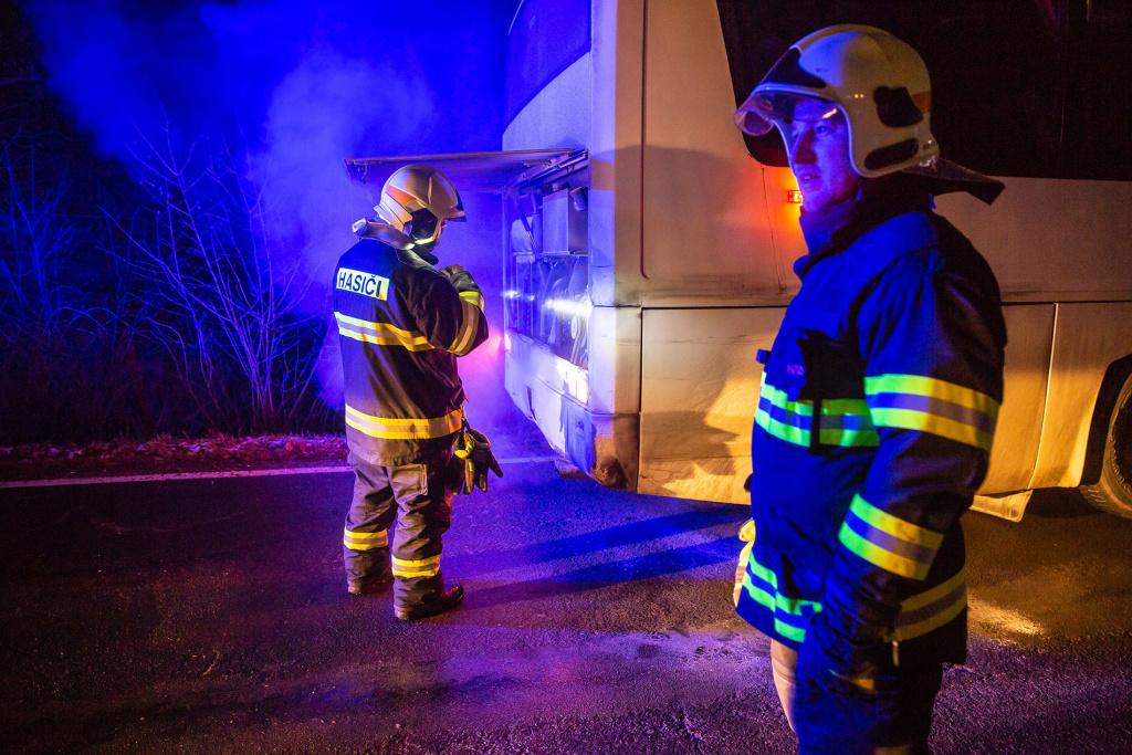 Požár se podařilo uhasit řidiči ještě před příjezdem hasičů, ti provedli následnou kontrolu a měření termokamerou.