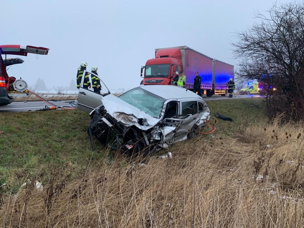 Profesionální jednotka z Jičína zasahovala na komunikaci I/16 u tragické dopravní nehody. Došlo zde ke střetu dvou osobních a jednoho nákladního automobilu. Na místo spěchali profesionální hasiči z Jičína, kteří museli na místě ze zdemolovaného vozu jednu osobu vyprostit.