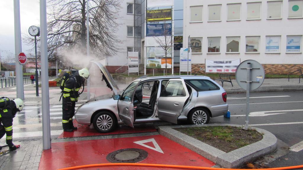 Na Gočárovu třídu spěchali profesionální hasiči z centrální stanice i ze stanice Hradec Králové – Pražská. Byli zalarmováni kvůli nahlášenému požáru osobního automobilu. Při příjezdu jednotek na místo události hořel vůz v motorové části. Hasiči požár rychle zlikvidovali a odstavili auto na parkoviště. Plameny způsobily škodu ve výši asi 15 tisíc korun.
