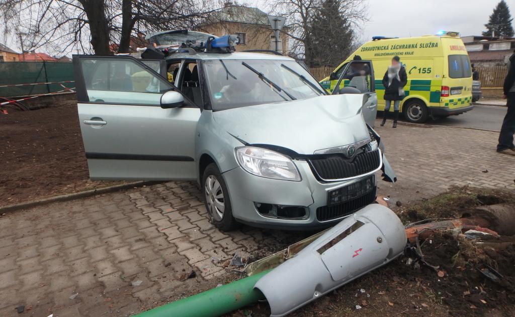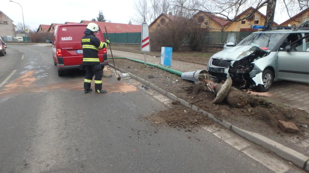 Profesionální hasiči z Jaroměře zasahovali v části Josefov u dopravní nehody osobního automobilu. Vůz havaroval do sloupu veřejného osvětlení. Při nehodě byly zraněny dvě osoby, o které se postarali záchranáři. Jednotka místo zásahu zajistila a následně pomohla s naložením vozidla na odtah.
