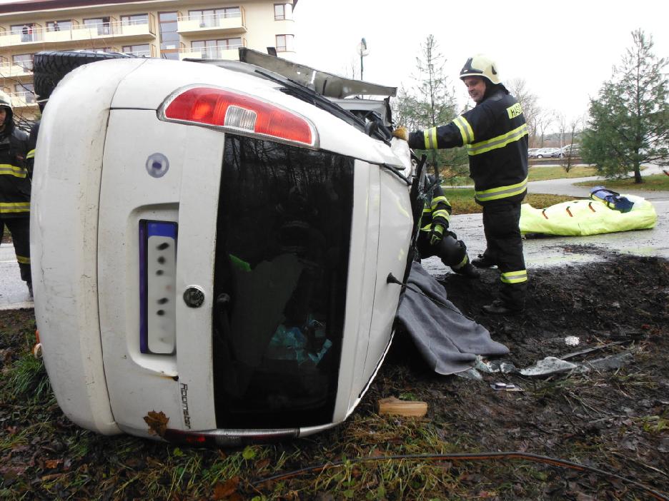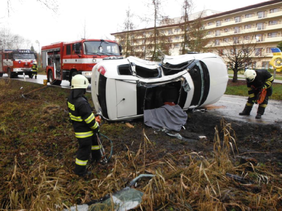 Profesionální hasiči z Nové Paky a Hořic spěchali do Lázní Bělohrad, kde byla nahlášena dopravní nehoda osobního automobilu. Vůz vylétl ze silnice a zůstal převrácený v příkopu na boku. Ve voze zůstaly zaklíněné dvě zraněné osoby. Hasiči poskytli zraněným lidem po svém příjezdu první předlékařskou pomoc a zahájili vyprošťovací práce.