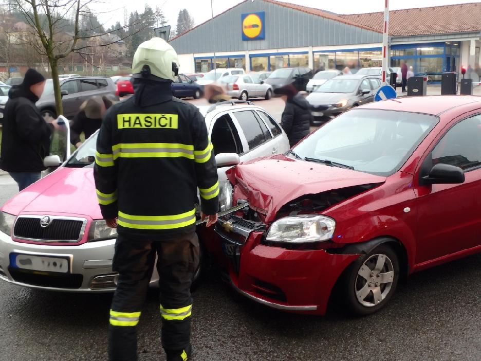 V Plhovské ulici havarovala dvě osobní vozidla na parkovišti u supermarketu. Nehoda se obešla bez zranění. Hasiči místo události zajistili a následně předali policistům.