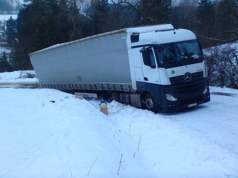 K dopravní nehodě kamionu vyjížděli v pondělí odpoledne profesionální hasiči z Náchoda. Kamion s návěsem se dostal na úseku mezi Stárkovem a Vlásenkou na zledovatělou silnici, návěs sjel do příkopu a zbytek vozidla blokoval provoz na komunikaci.