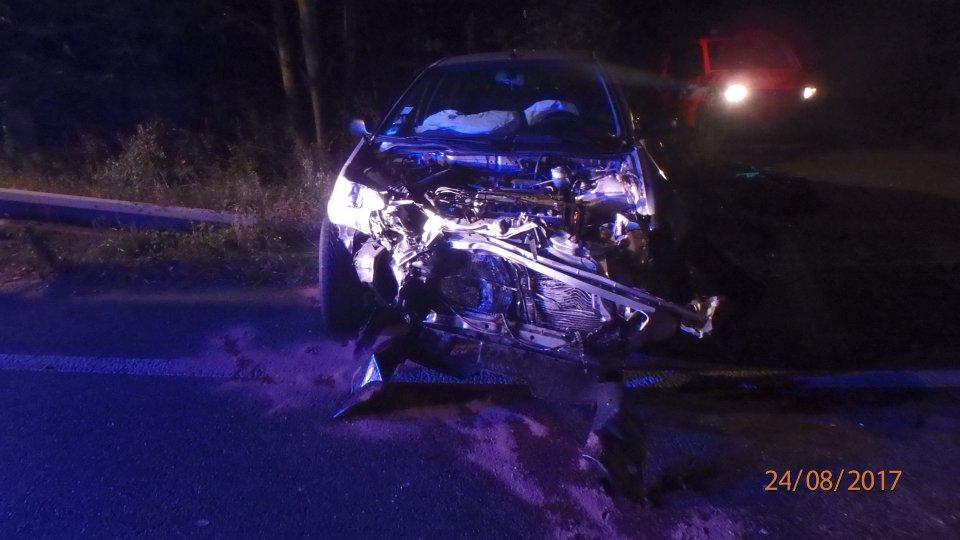 Náchodští profesionální hasiči byli v 9:57 přivoláni k osobnímu vozidlu, s nímž jeho řidič narazil do dvou sloupků na ostrůvku. Nehoda se stala v ulici Běloveská v Náchodě. Došlo k úniku oleje z proražené olejové vany vozu. Hasiči pomohli s naložením vozidla na odtah. Jednotka místo pomocí sorbentu uklidila.