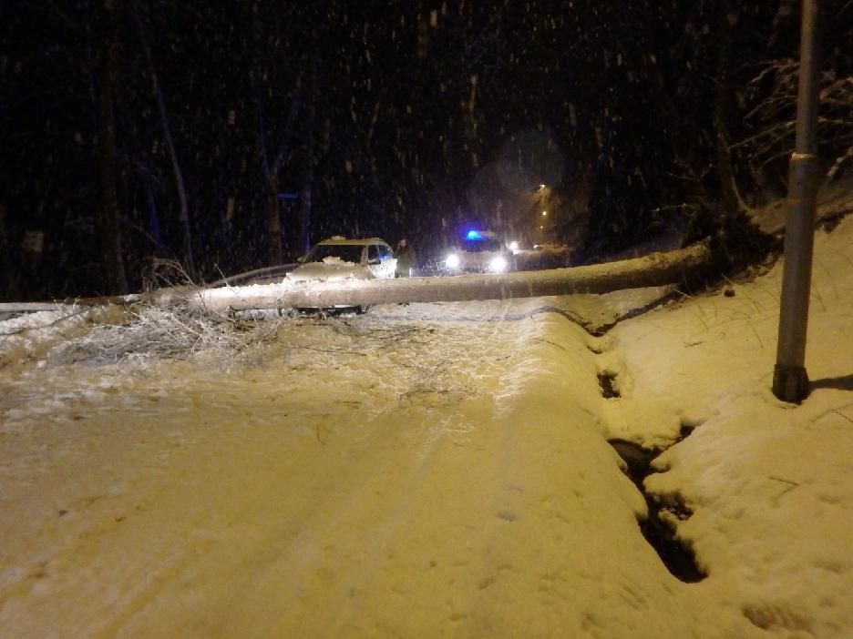 Odstranění stromu spadlého na osobní vozidlo. Bez zranění. (HZS Vrchlabí)