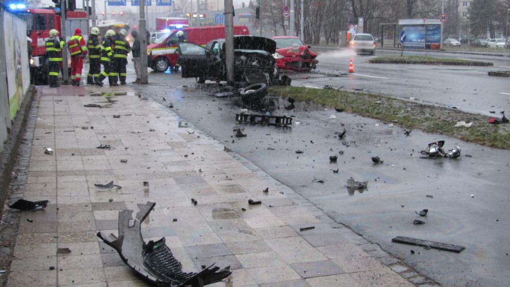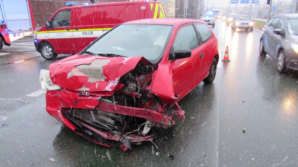 Na Brněnské ulici došlo ke střetu dvou osobních vozidel. Auta byla značně poškozena, jedno z nich narazilo následkem nehody do sloupu vedle silnice. Na místo zásahu vyjeli profesionální hasiči z centrální stanice, při nehodě byly zraněny dvě osoby. Jednotka místo zásahu zajistila, provedla opatření proti vzniku požáru a odstranila následky dopravní nehody.