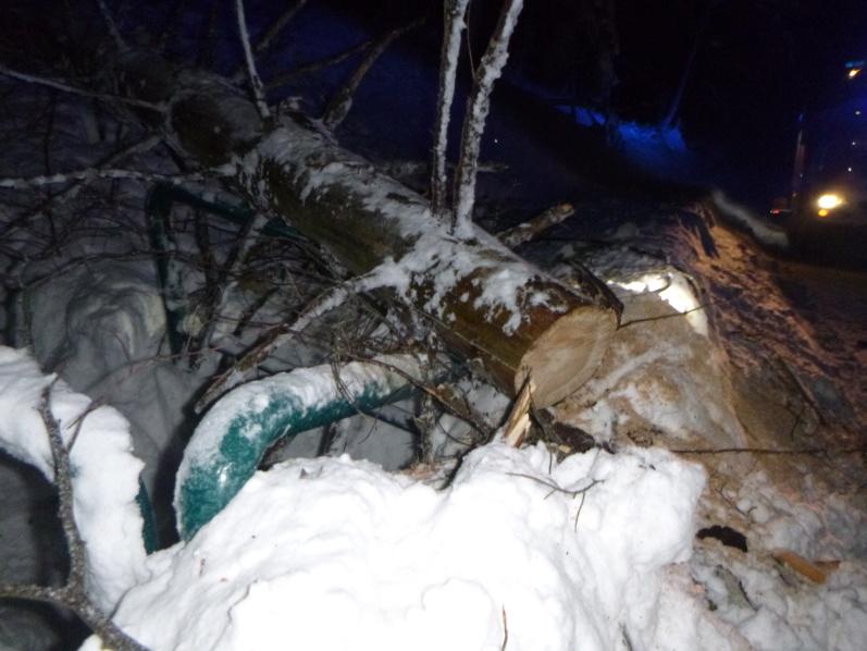Profesionální hasiči z Trutnova zasahovali u dopravní nehody, kdy osobní automobil narazil do spadlého stromu. Vozidlo bylo lehce poškozeno, řidička vyvázla bez zranění. Hasiči spadlý strom rozřezali a odstranili.