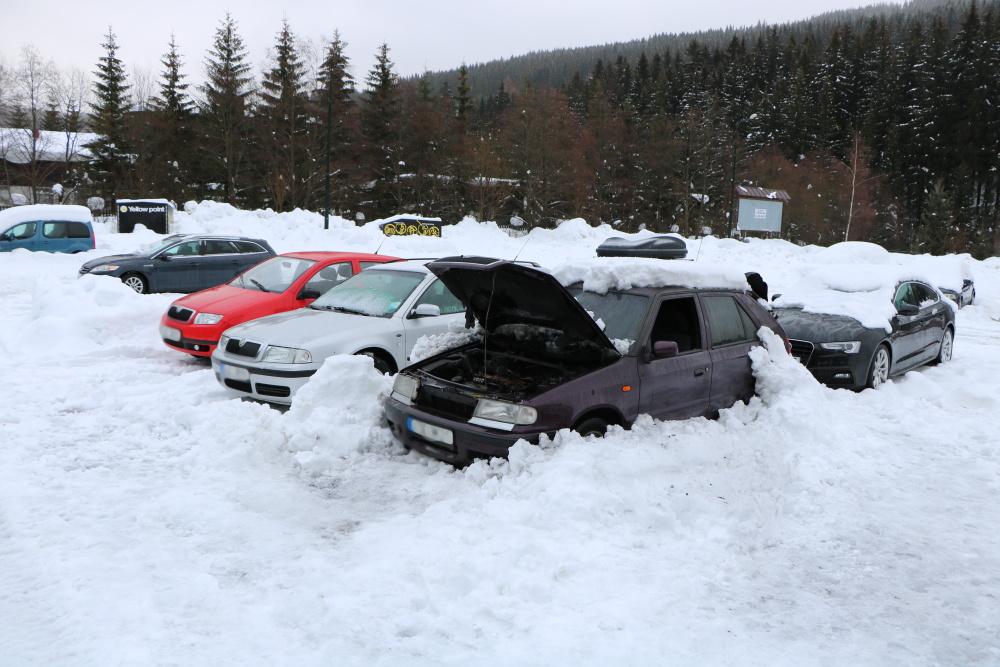 Do části Bedřichov spěchali profesionální hasiči z Vrchlabí a dobrovolná jednotka ze Špindlerova Mlýna. Na parkovišti hořel osobní automobil značky Škoda Felicie.