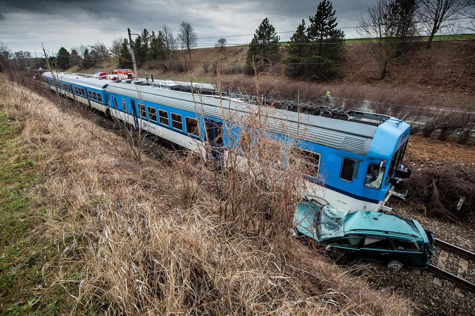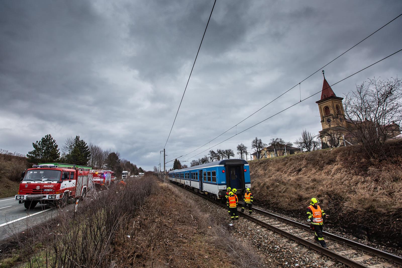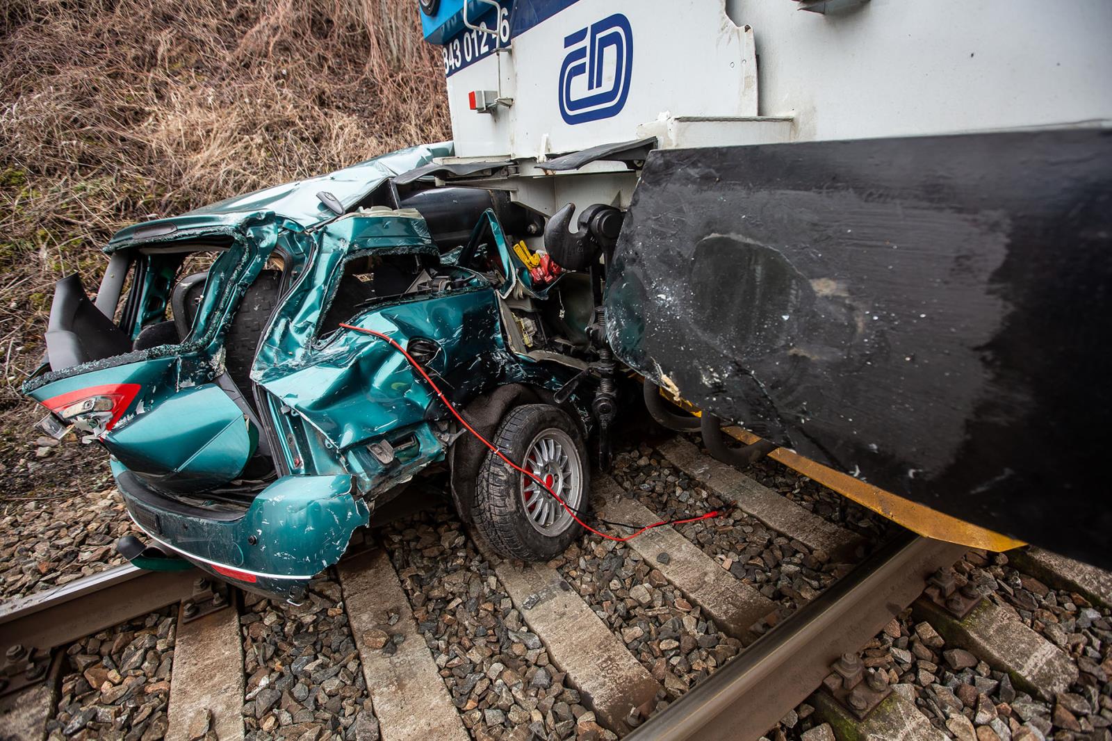 Osobní vozidlo vyjelo mimo komunikaci a dostalo se přes násep až do kolejiště, kde se s ním následně střetl vlak plný cestujících.