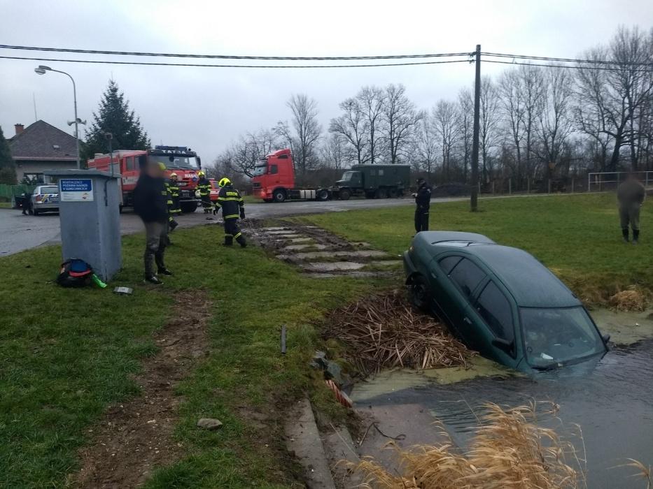 V semechnické požární nádrži skončilo vozidlo poté, co vyjelo mimo komunikaci. Auto zajelo do vody přední částí, při nehodě došlo také k úniku provozních kapalin. Na místo zásahu přijeli profesionální hasiči z Dobrušky a dobrovolná jednotka z Opočna. Hasičům se podařil dostat pomocí navijáku automobil zpět na komunikaci. Nikdo nebyl při nehodě zraněn. Následně sebraly jednotky uniklý olej z hladiny pomocí sorpčních hadů.
