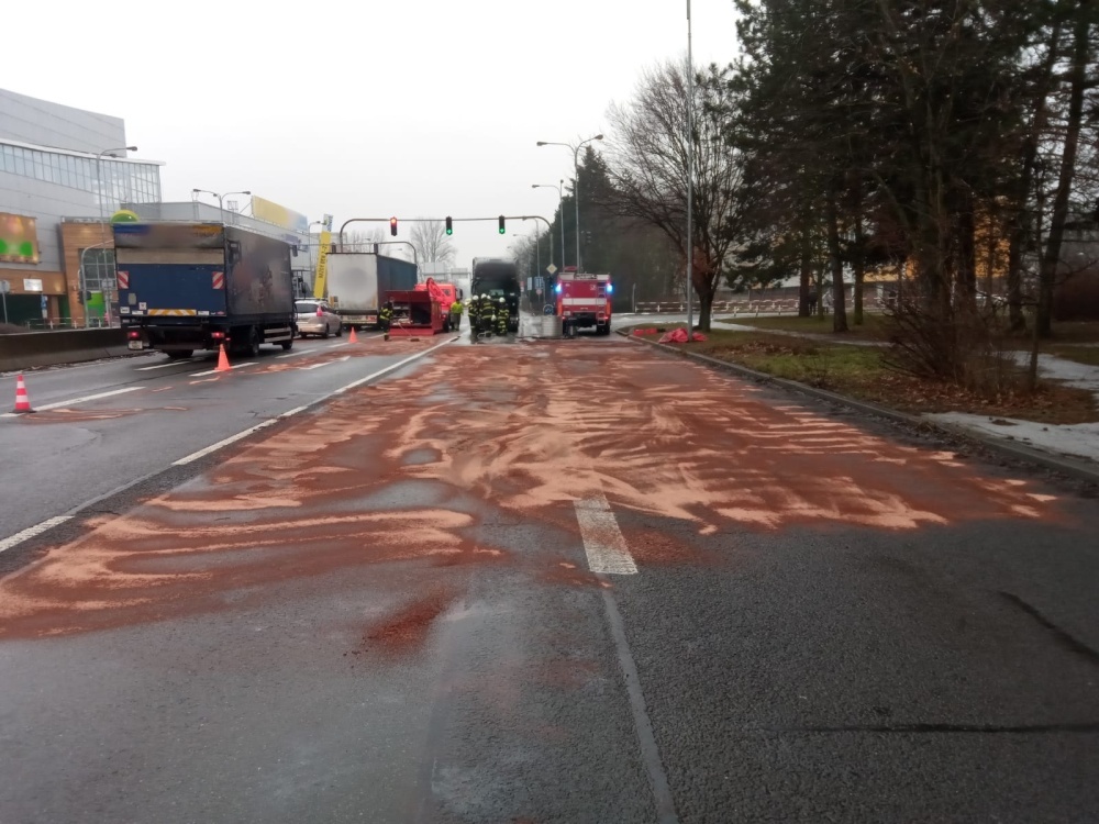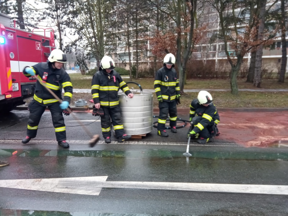 Proražená nádrž odtahovaného nákladního vozidla a následný masivní únik nafty na silnici zaměstnaly na dopoledne profesionální jednotku z centrální hradecké stanice. Do ulice Víta Nejedlého musela vyjet také speciální technika, která se využívá při úniku nebezpečných látek – chemický kontejner a kontejner na likvidaci ropných látek.