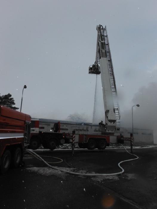Při příjezdu hasičů na místo události byla požárem zachvácena část objektu, který má celkové rozměry 60x10 m. Jednotky požární ochrany se soustředily především na to, aby zabránily dalšímu šíření požáru a uchránily tak druhou polovinu haly. K hašení byla využita také výšková technika, a sice automobilová plošina Bronto.