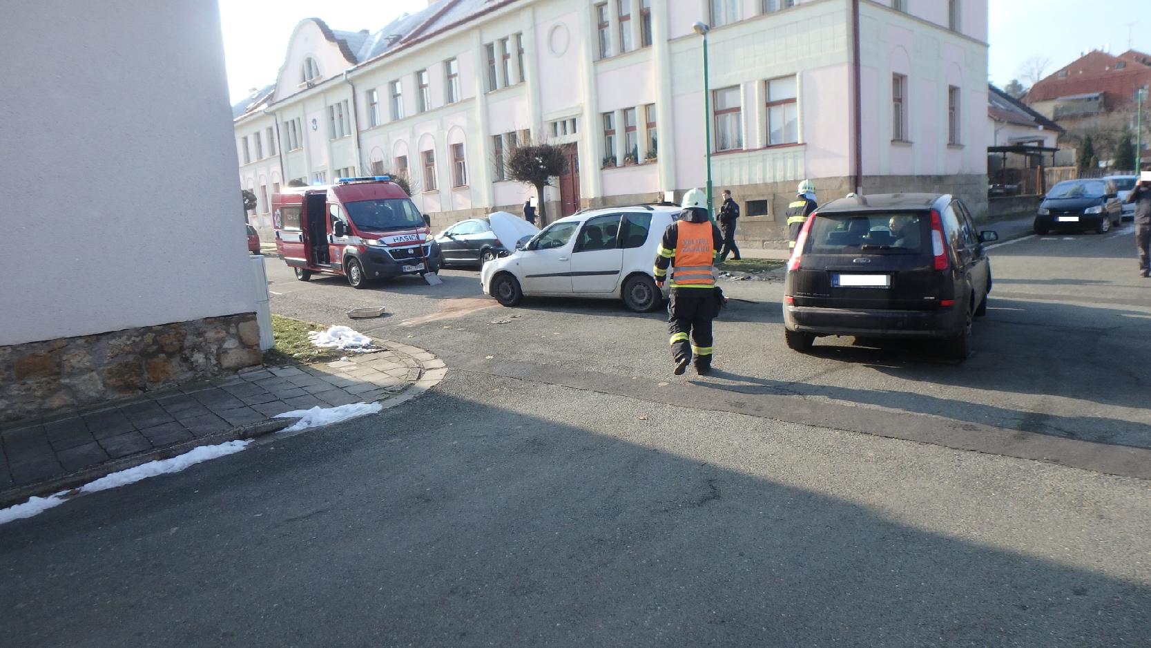 Profesionální hasiči z Nového Bydžova spolu s dobrovolnými hasiči z Chlumce nad Cidlinou vyjeli odpoledne k dopravní nehodě dvou osobních vozidel do ulice Říhova.