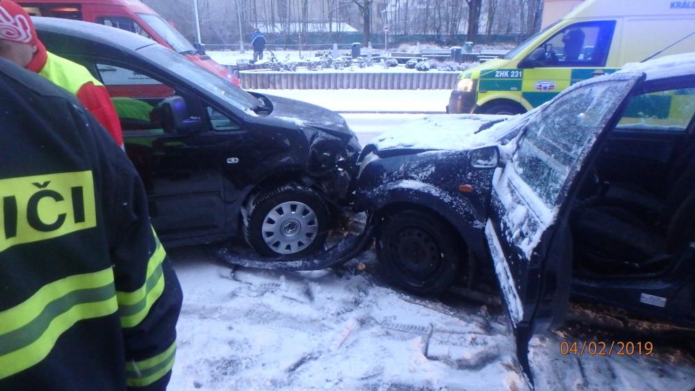 V Hradecké ulici došlo ke střetu dvou osobních vozidel, na místo události byli vyslání profesionální hasiči z centrální stanice. Při nehodě nebyl nikdo zraněn. Jednotka místo události zajistila a následně jej předala policistům.