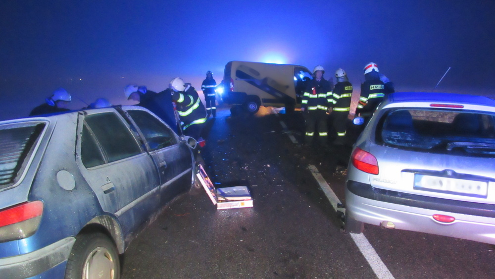 Z jednoho z havarovaných aut museli hasiči jednoho člověka vyprostit, použili k tomu hydraulické vyprošťovací zařízení. Osobu následně vyndali z vozu ven na páteřní desce a pomáhali záchranářům s ošetřením.